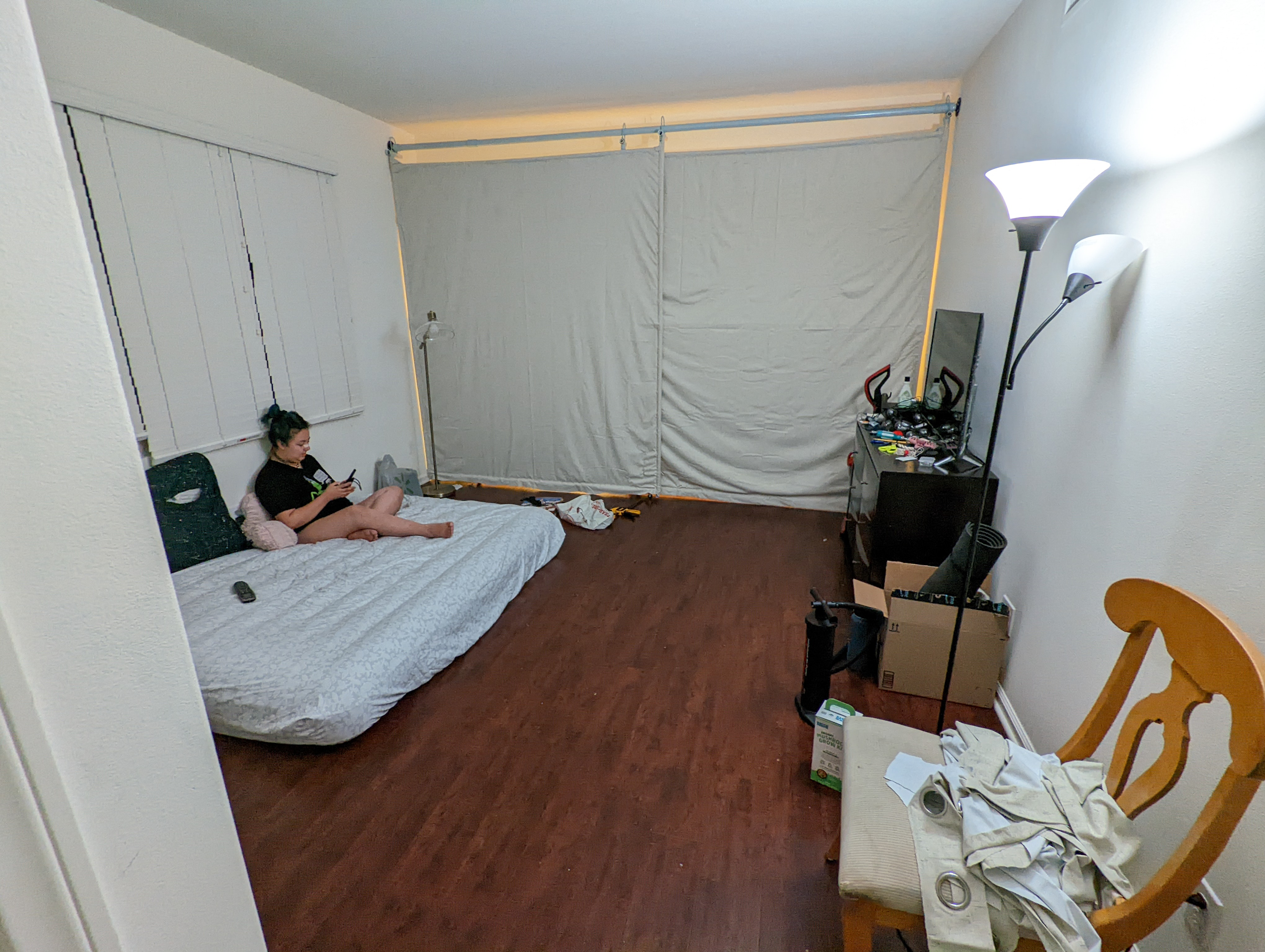 Cat and I had started living together the way all couples do, with spending the night at each others' places more and more until eventually there was a lease involved. For us, that happened summer of 2022 during a weird 2 months where all my clothes / stuff stayed downstairs in the living room. We didn't even own a couch yet; instead making do with an air mattress. One of the cats made muffins on it, and thereafter the poor mattress couldn't even last through an entire episode of the Good Place before ass touched floor. We made sure to get a real couch quickly after.