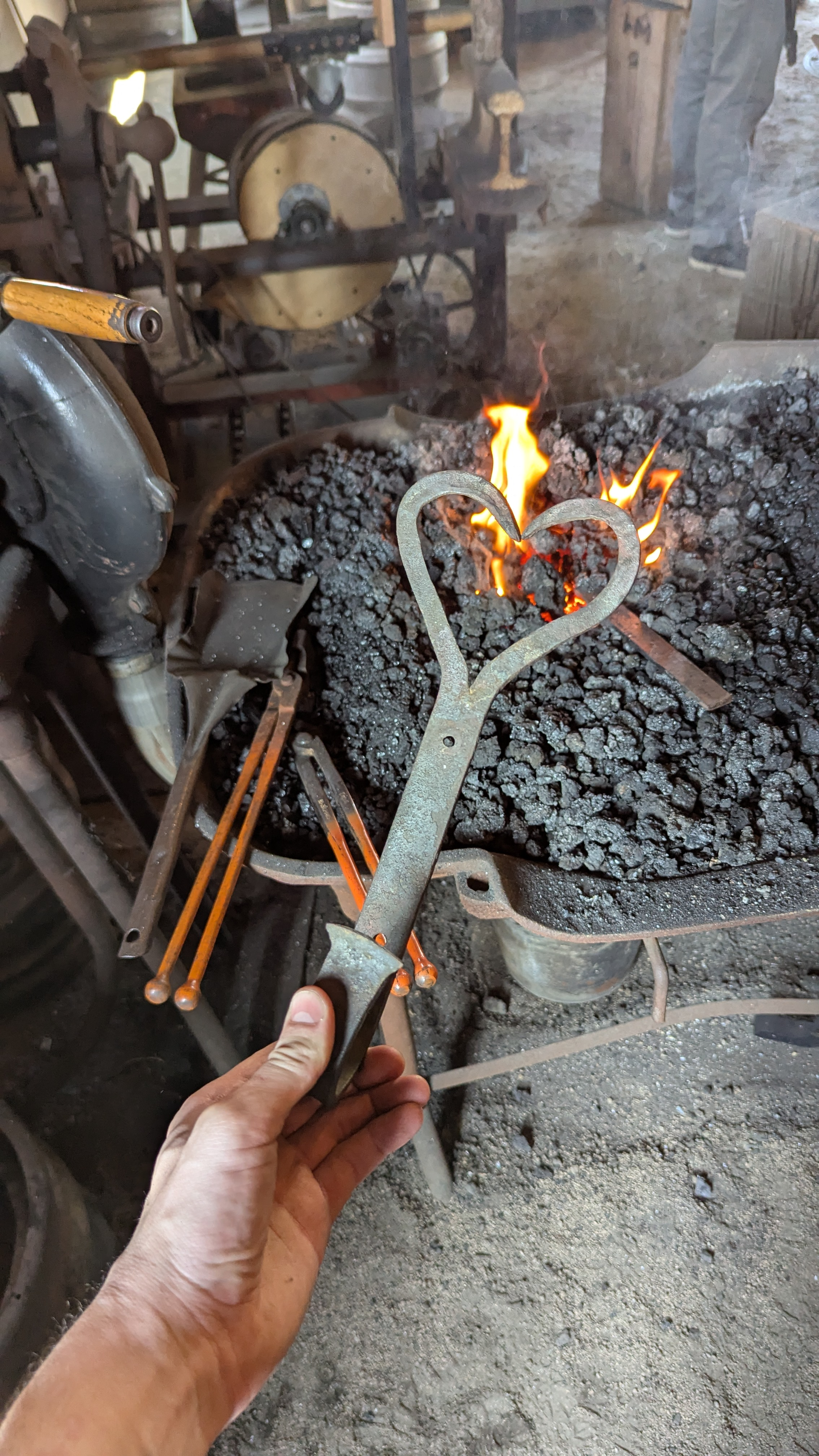 *technically. I've been taking lessons there for about a year now, and my skills have come a looooooong way. The heritage museum is also a charming wedding venue, and couples have the option of hiring a smith to forge a cake cutter, make wedding favors, chat about the historical art of blacksmithing, that sort of thing. I'm not nearly good enough yet to be forging wedding gifts; rather I would be the one chatting with the wedding while master smith Caroline churned out hearts for the guests to keep.